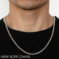 10K 4MM WHITE GOLD SOLID DC ROPE 26" CHAIN NECKLACE (AVAILABLE IN LENGTHS 7" - 30")