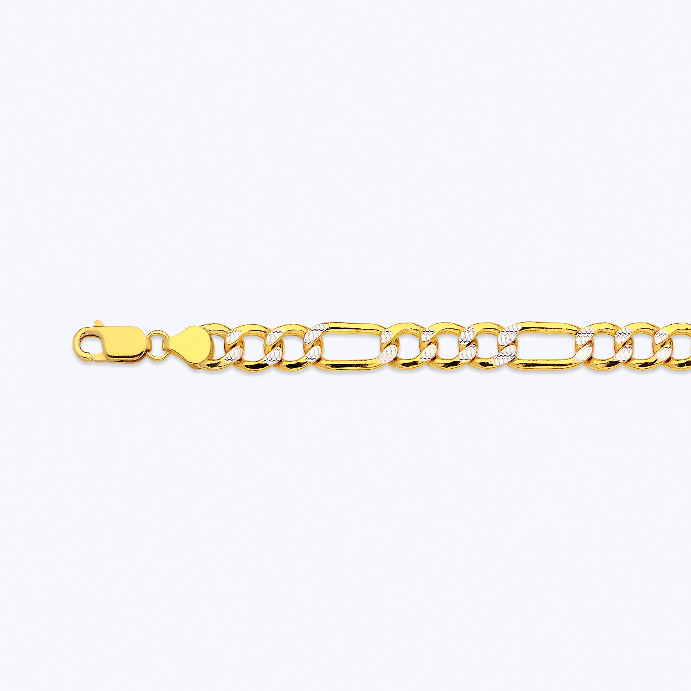 10K 7.5MM YELLOW GOLD HOLLOW PAVE FIGARO 7.5" CHAIN BRACELET (AVAILABLE IN LENGTHS 7" - 30")