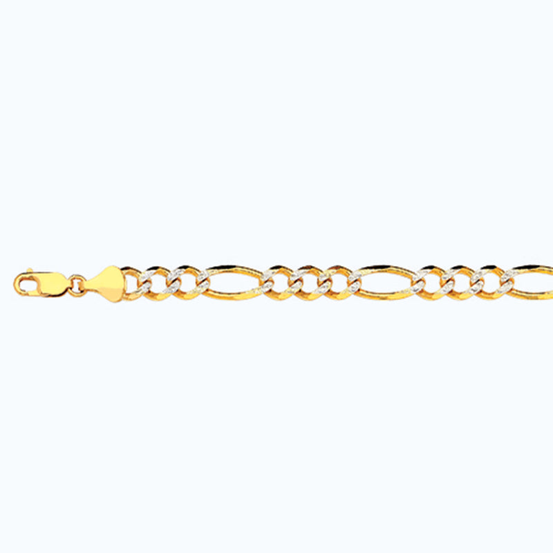 10K 8MM YELLOW GOLD SOLID PAVE FIGARO 28" CHAIN NECKLACE (AVAILABLE IN LENGTHS 7" - 30")