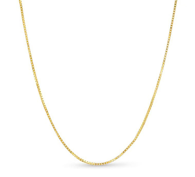 This 10 Karat Yellow Gold Box Chain is a classic chain that is loved worldwide. Made with authentic 10k yellow gold, this chain has cube shaped links that interlock, which makes the chain unique. Comes with various lengths that will match your preference, this chain weighs approximately 0.05 grams per inch and may not be exact.