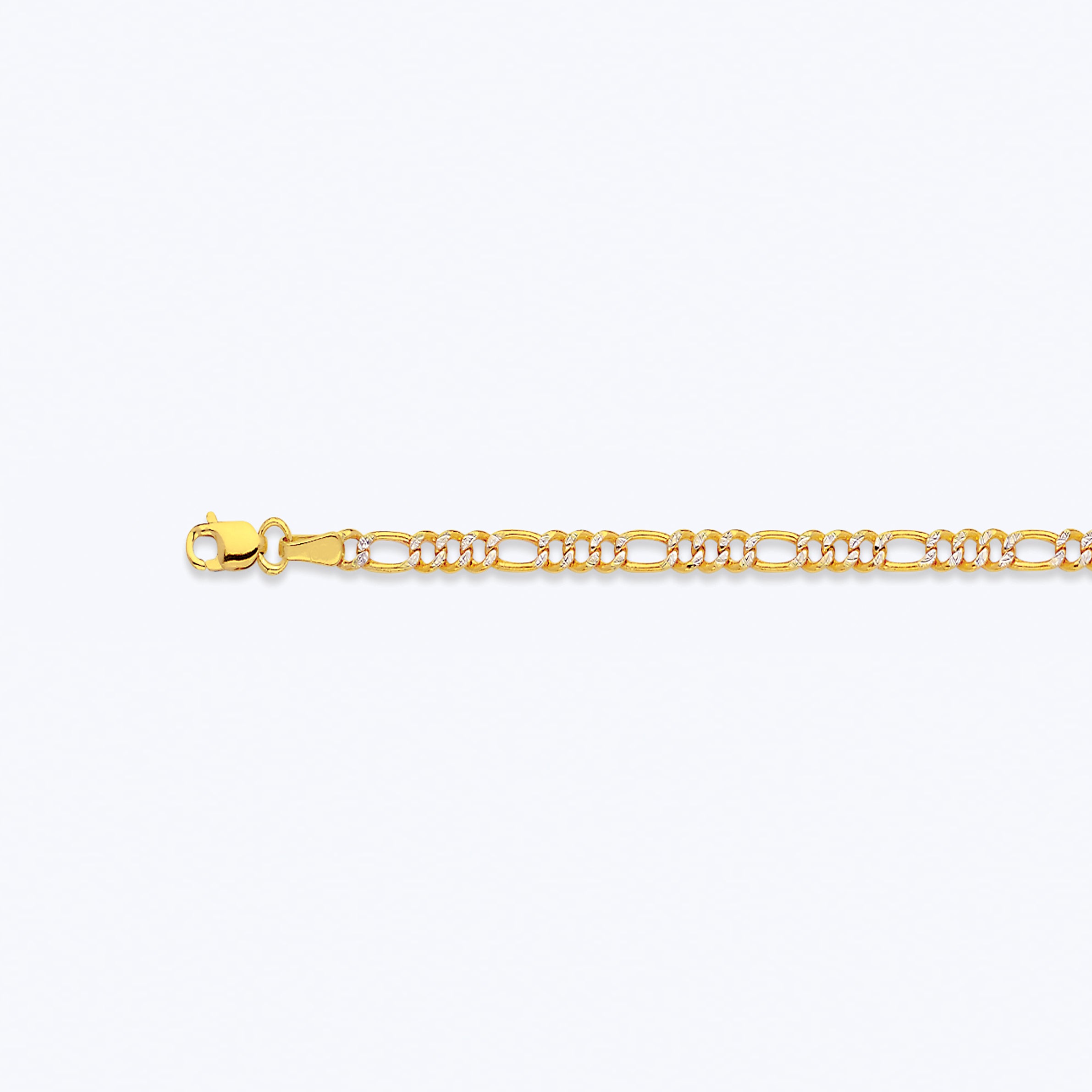 14K 2.5MM YELLOW GOLD HOLLOW PAVE FIGARO 8" CHAIN BRACELET (AVAILABLE IN LENGTHS 7" - 30")
