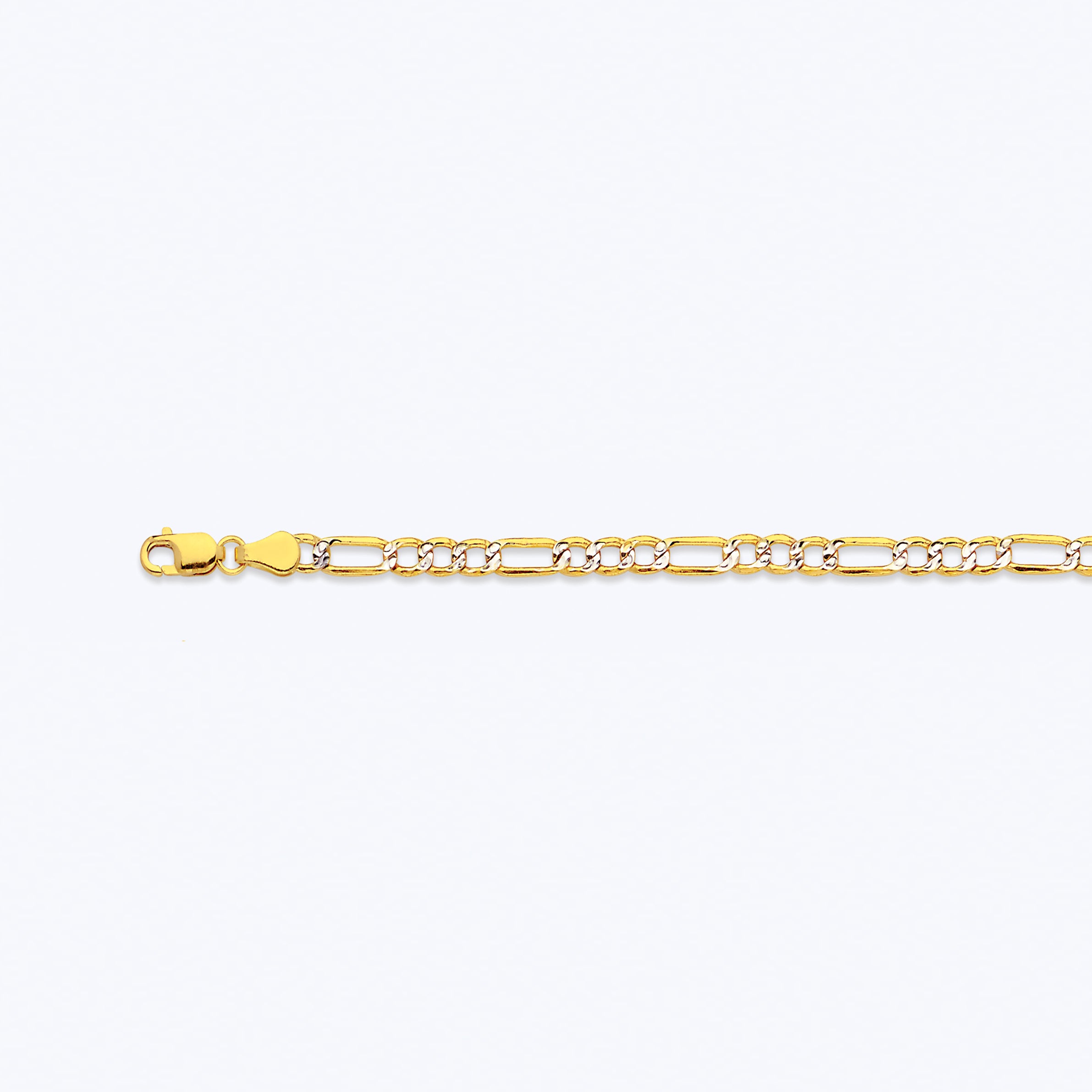 14K 3.5MM YELLOW GOLD HOLLOW PAVE FIGARO 7.5" CHAIN BRACELET (AVAILABLE IN LENGTHS 7" - 30")