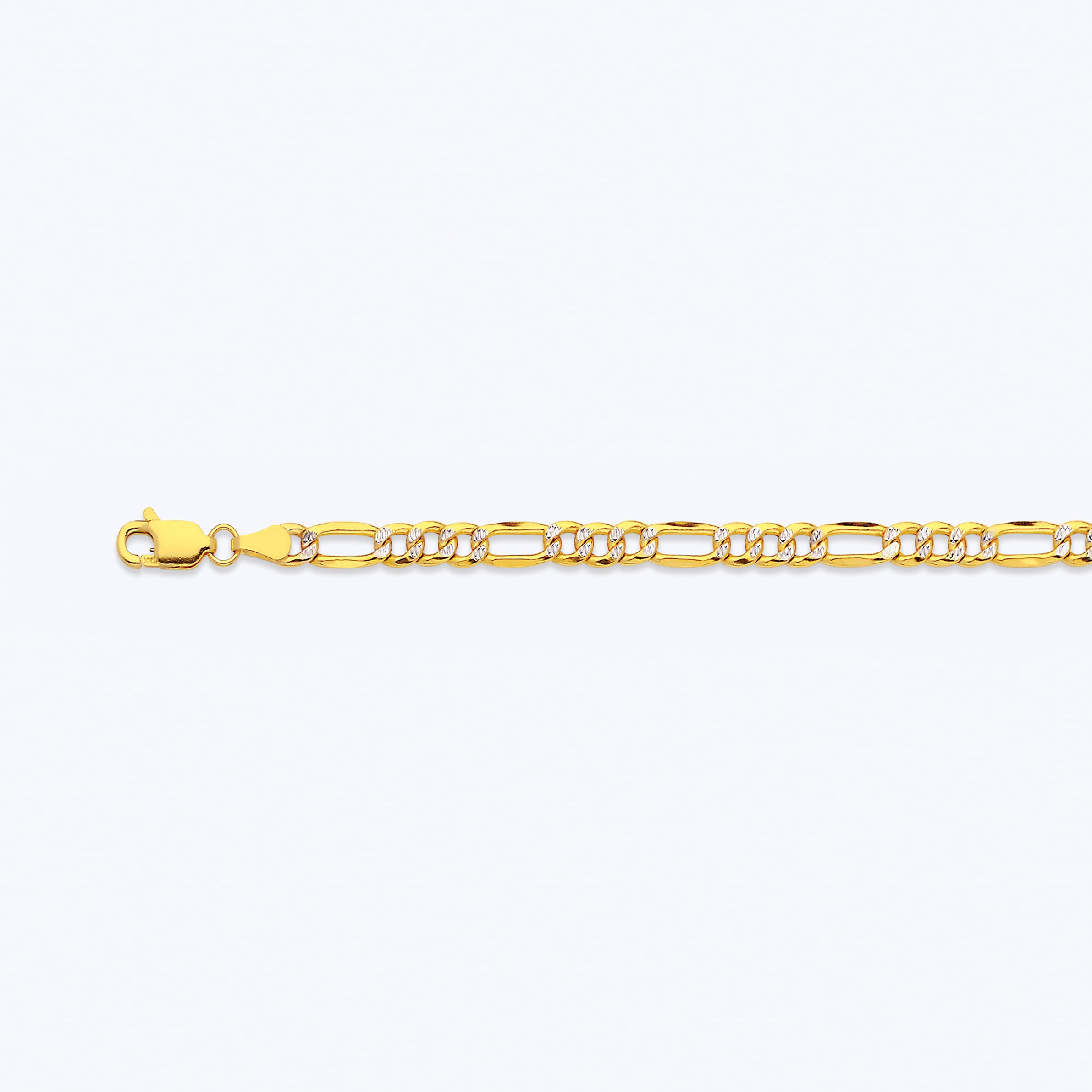 14K 4.5MM YELLOW GOLD HOLLOW PAVE FIGARO 7" CHAIN BRACELET (AVAILABLE IN LENGTHS 7" - 30")