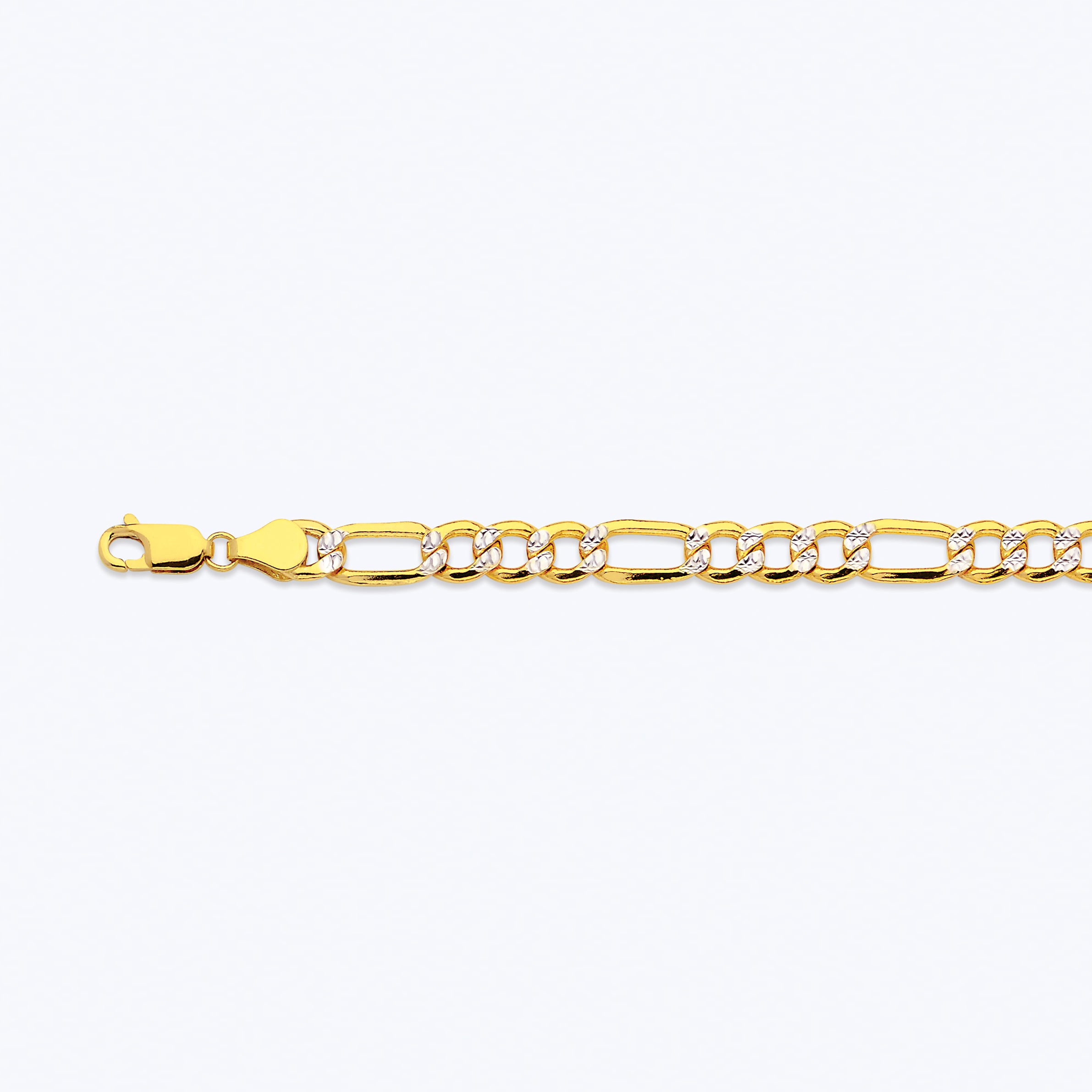 14K 6.5MM YELLOW GOLD HOLLOW PAVE FIGARO 8.5" CHAIN BRACELET (AVAILABLE IN LENGTHS 7" - 30")