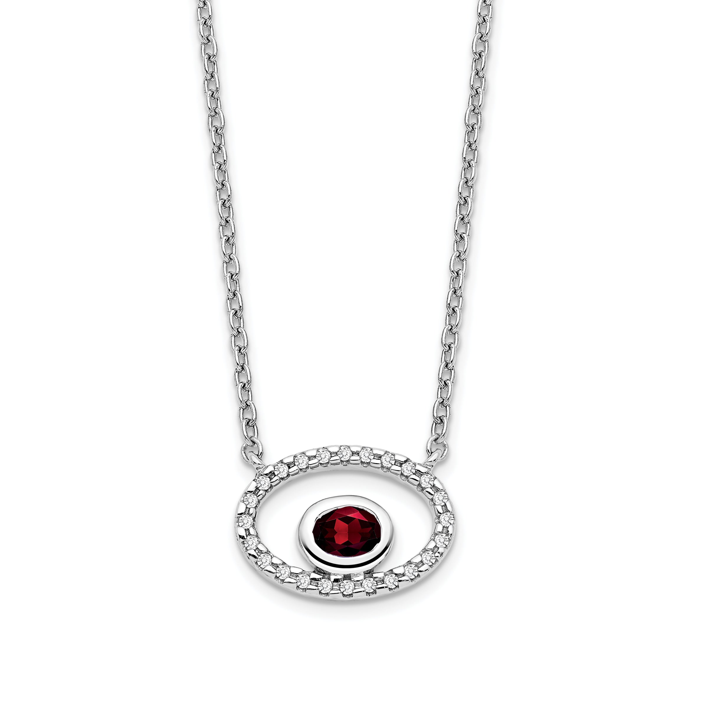14k White Gold Oval Garnet and Diamond 18in. Necklace-PM7135-GA-007-WA
