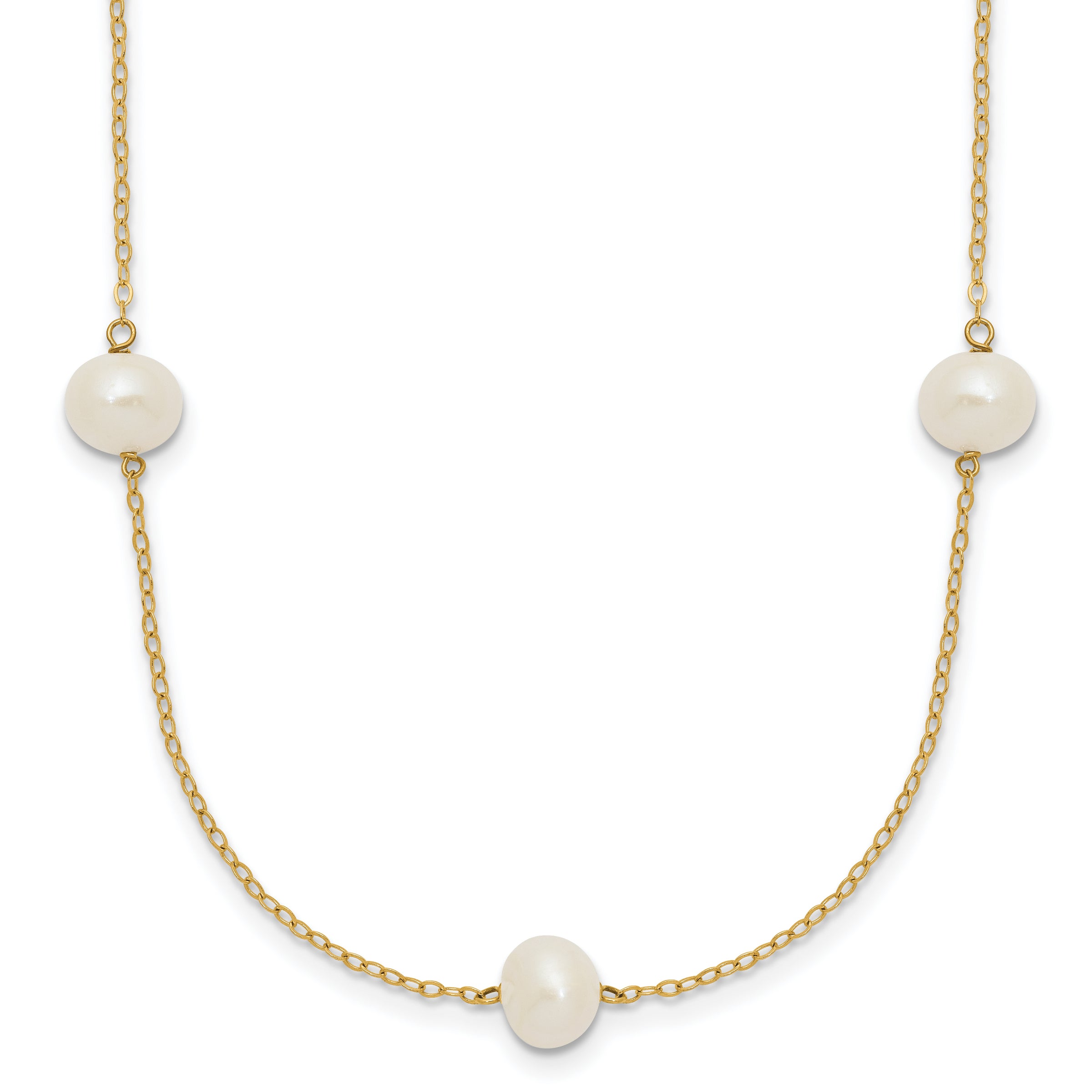 | Description: | 14K 7-8mm White Near Round Freshwater Cultured Pearl 7-Station Necklace |