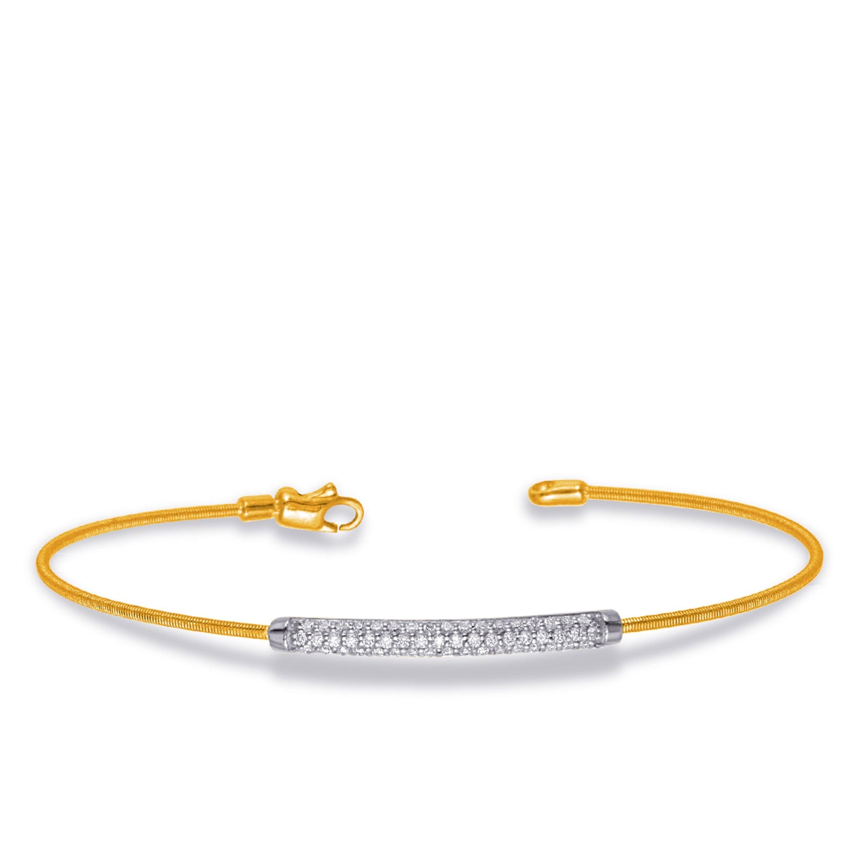 This Bracelet is available in 14K Yellow & White Gold. There are a total of 52 stones. There are Rounds with a total carat weight of 0.32 set in a setting.