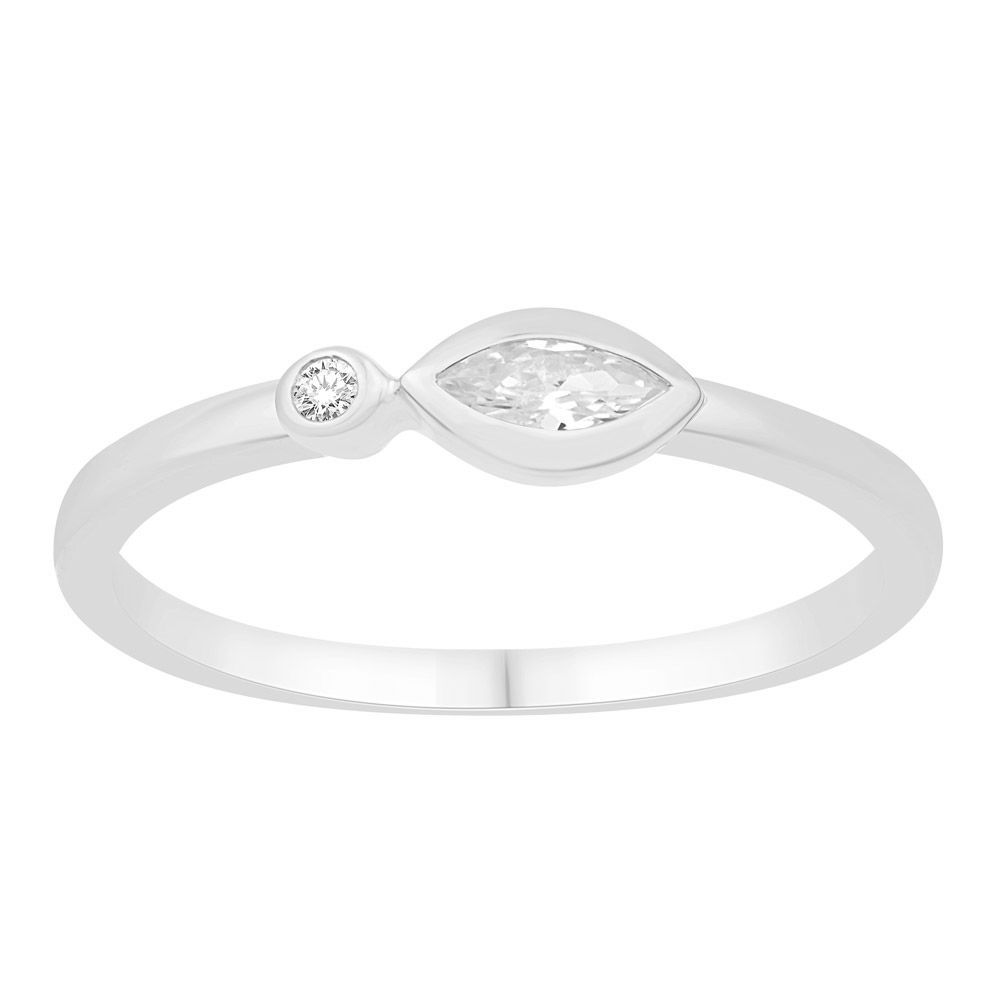 This Fashion Ring is available in 14K White Gold. There are a total of 2 stones. There are Marquise with a total carat weight of 0.14 set in a Bezel Set setting.There are Rounds stones with a total carat weight of 0.02 set in a Bezel Set.