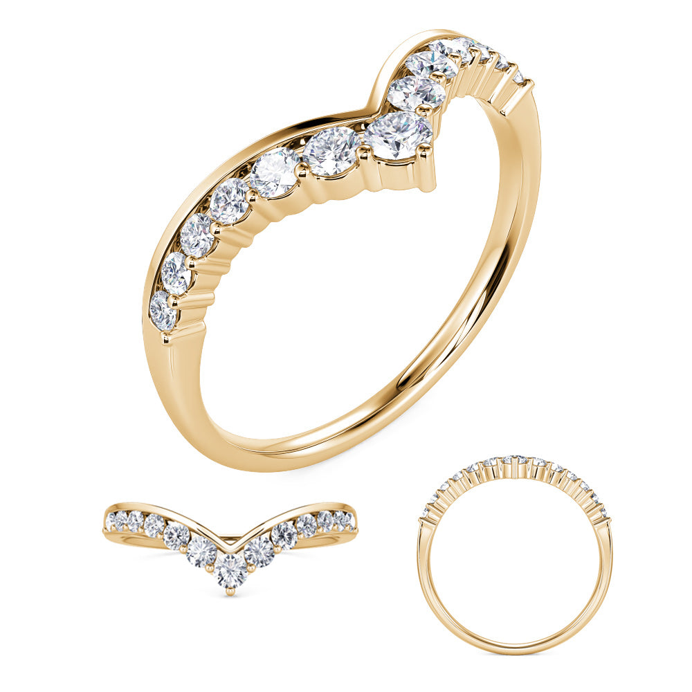 This Fashion Ring is available in 14K Yellow Gold. There are a total of 13 stones. There are Rounds with a total carat weight of 0.3 set in a Prong Set setting.