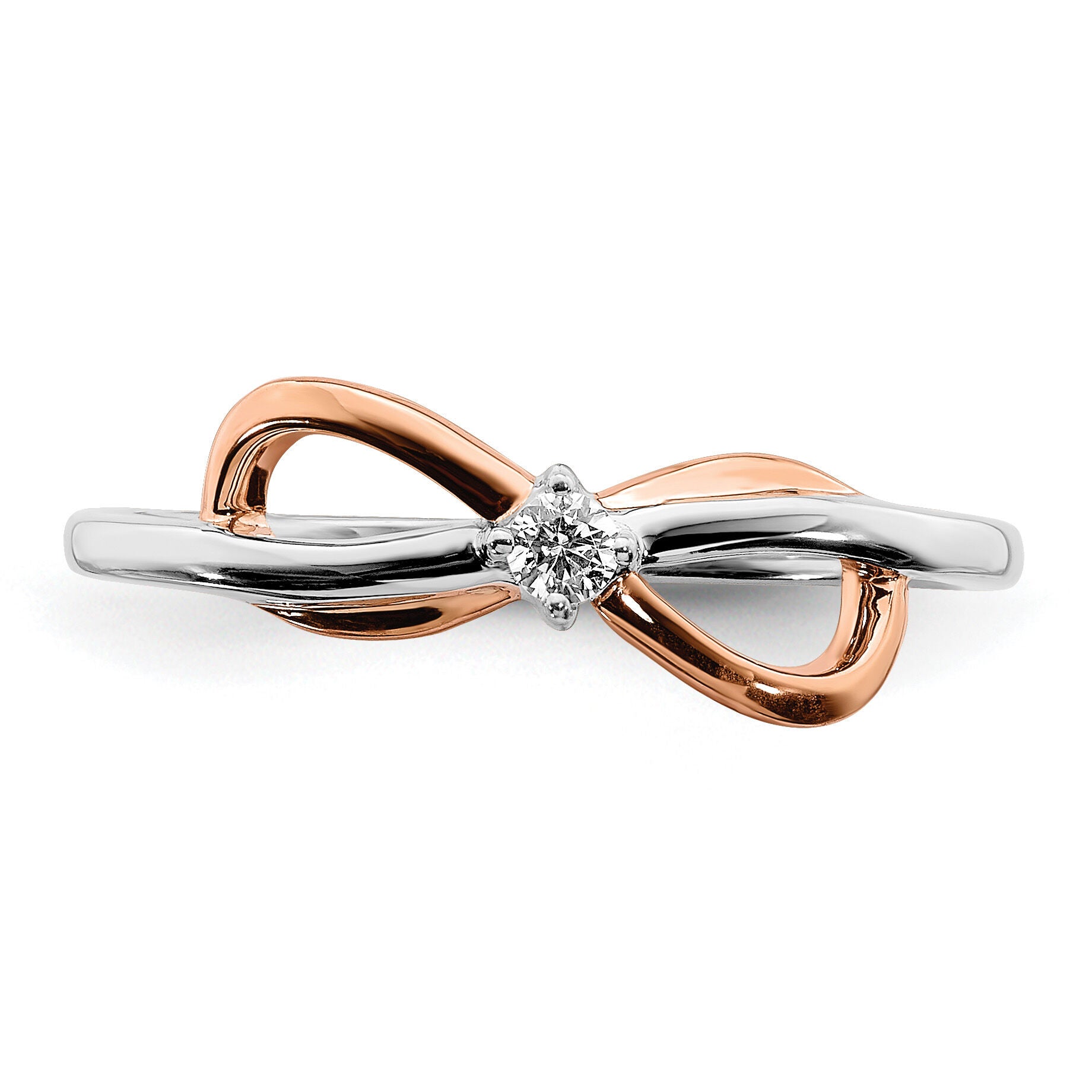| Description: | 14k Two-tone White & Rose Polished Infinity Diamond Ring |