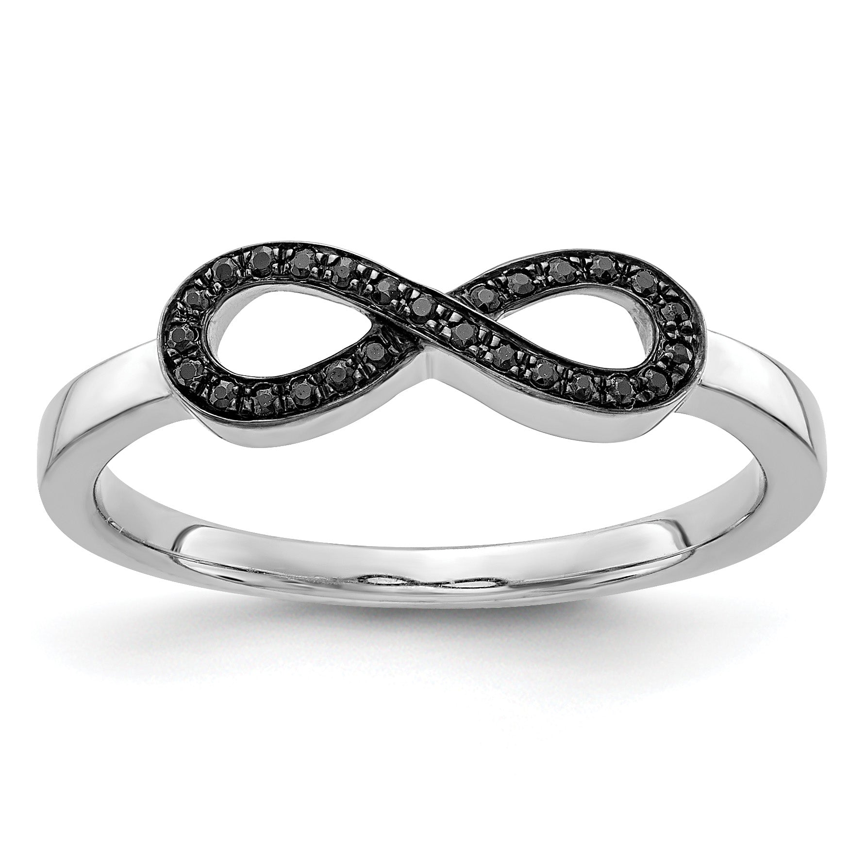 Description: 14k White Gold Black Diamond Infinity Ring