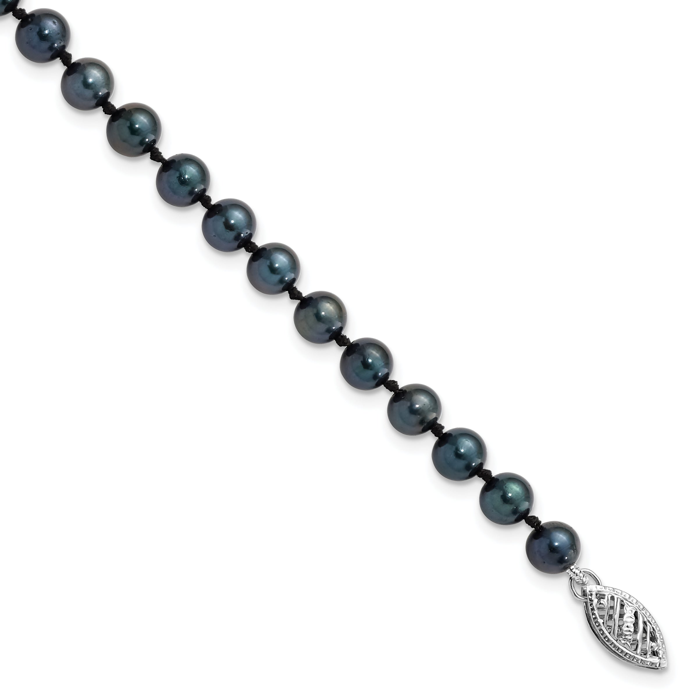 | Description: | 14k White Gold 5-6mm Round Black Saltwater Akoya Cultured Pearl Bracelet |