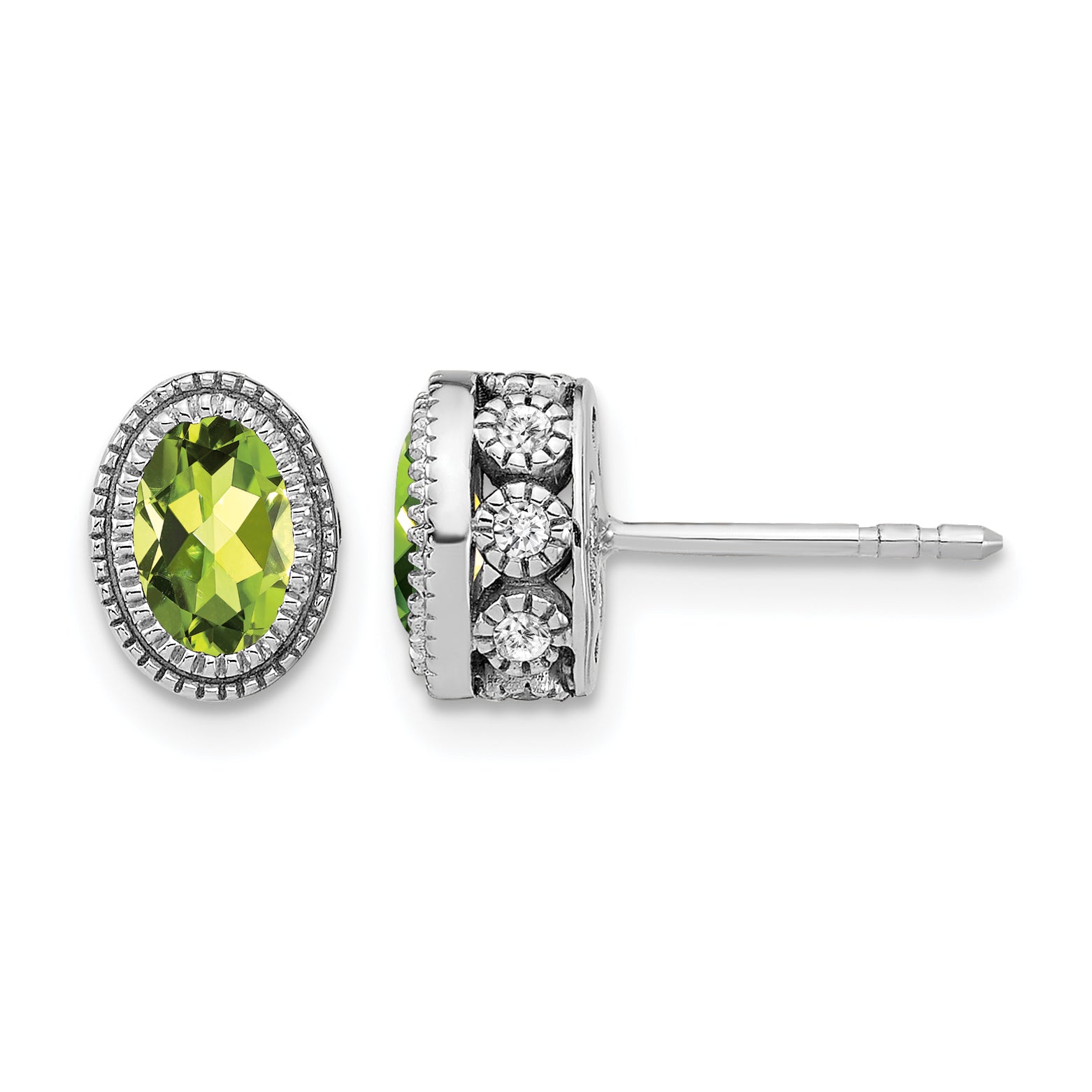 14k White Gold Oval Peridot and Diamond Earrings-EM7093-PE-019-WA