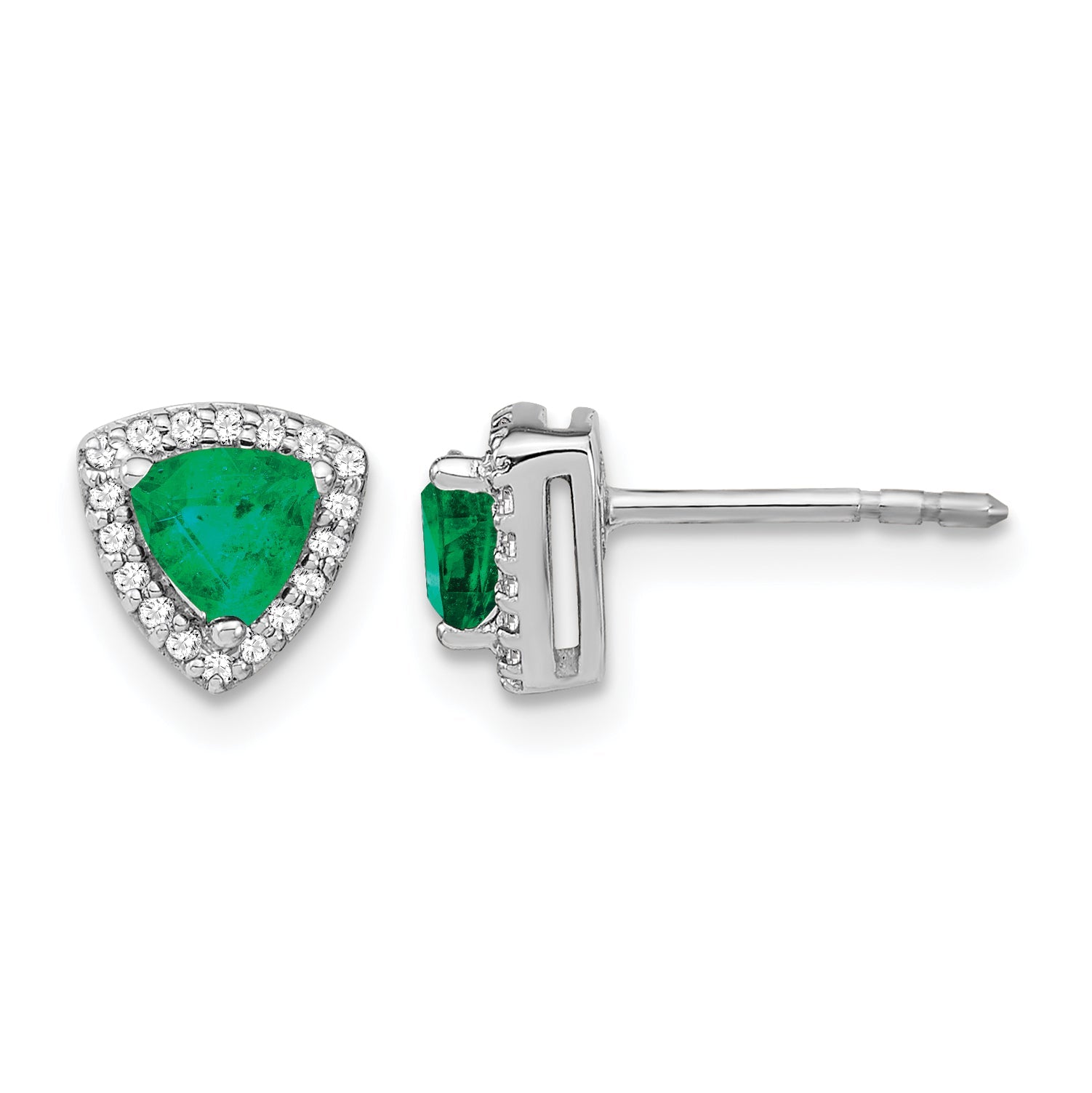 14k White Gold Trillion Emerald and Diamond Halo Earrings-EM4240-EM-014-WA