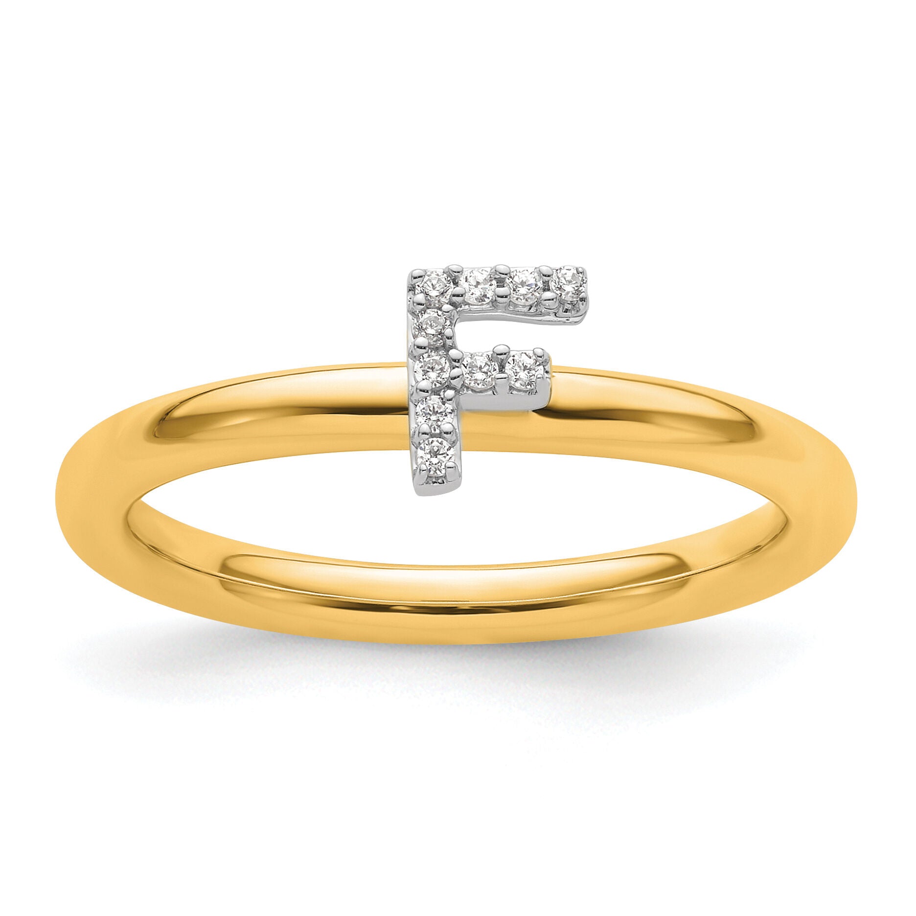 | Description: | 14K Stackable Diamond Initial F Ring |