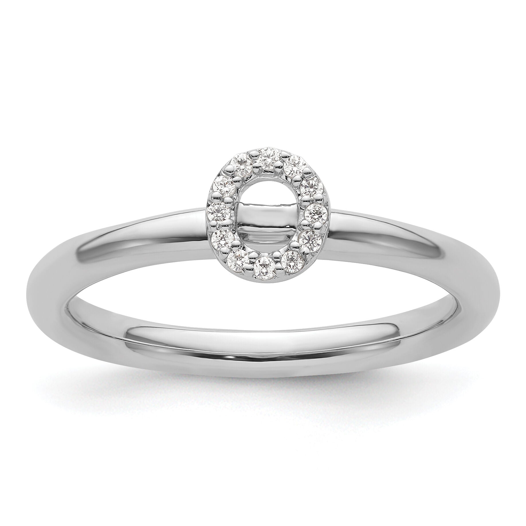 14K White Gold Stackable Diamond Initial O Ring-SK2112OW
