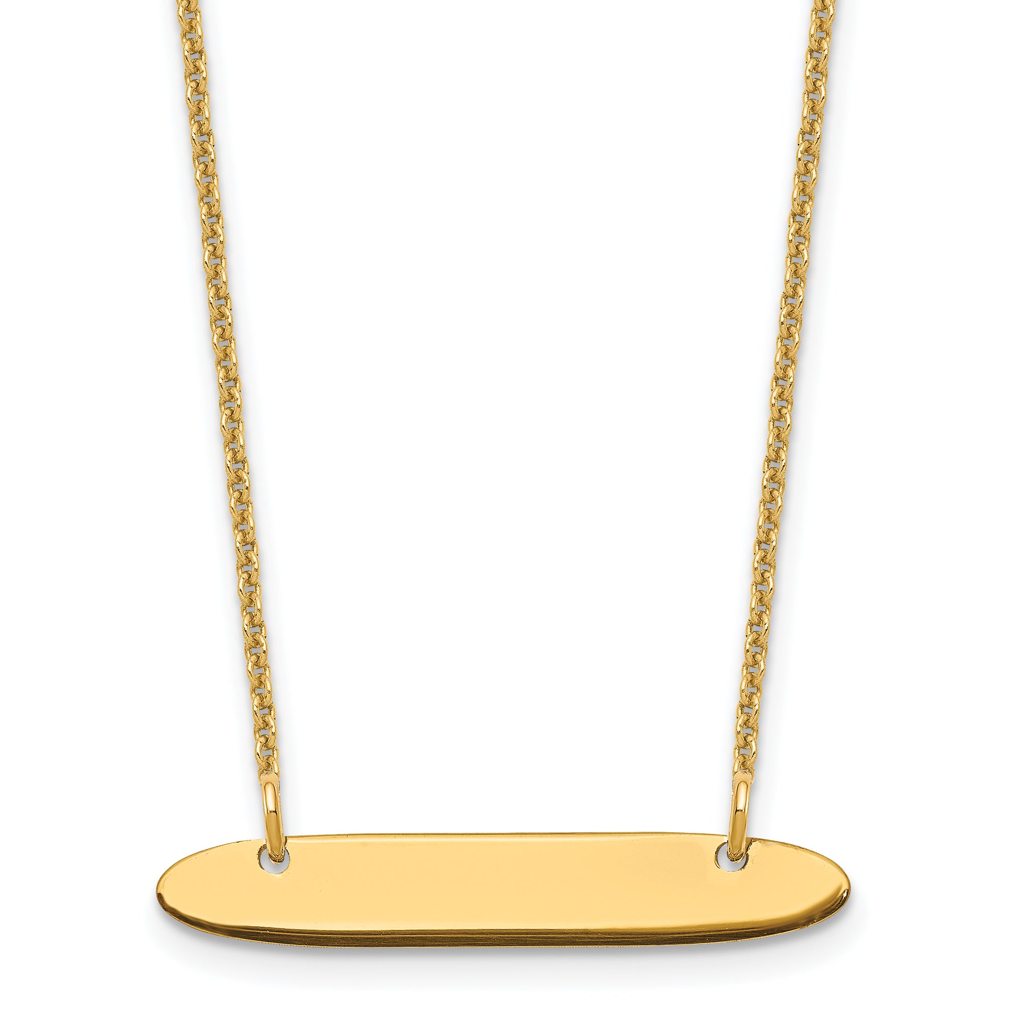 | Description: | 10k Yellow Gold Small Oblong Blank Bar Necklace |