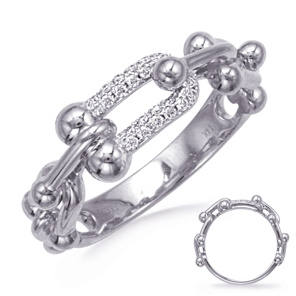 This Fashion Ring is available in 14K White Gold. There are a total of 22 stones. There are Rounds with a total carat weight of 0.13 set in a Micro Prong setting.